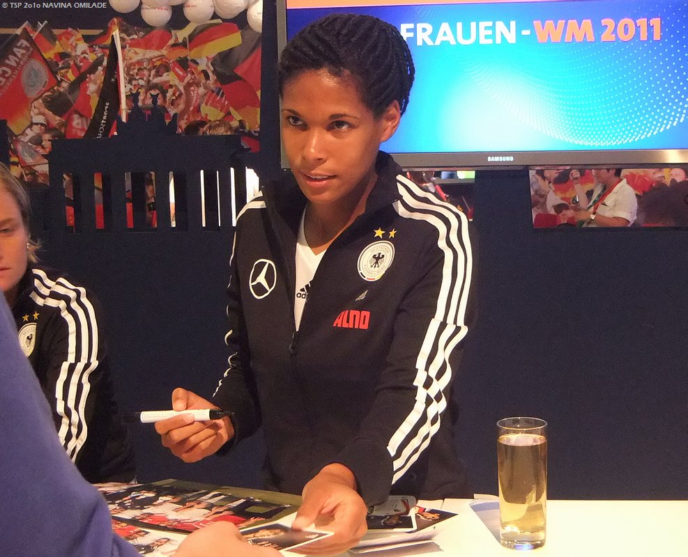 | IFA heißt Fernsehen zum Anfassen. Bekannte Moderatoren wie Isabelle Körner (n-tv), Gerald Meyer (rbb) und Florian Weber (ARD-Buffet) stehen hier in provisorischen Kulissen vor der Kamera, Jürgen Karney leitete gemeinsam mit Kira Herbrandt (zeitweilig Wetterfee auf rbb) das Bühnenprogramm im Sommergarten und erfolgreiche Fußballerinnen verteilen zur Einstimmung auf die Frauen-Fußball WM 2011 ihre Autogramme (hier Navina Omilade). FAZIT: 3D ist da! |